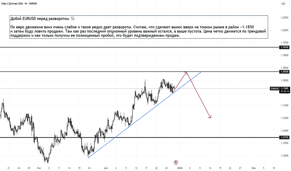 По евро движение вниз очень слабое и такое редко дает развороты. Считаю, что сделают вынос вверх на тонком рынке в район ~1.1850