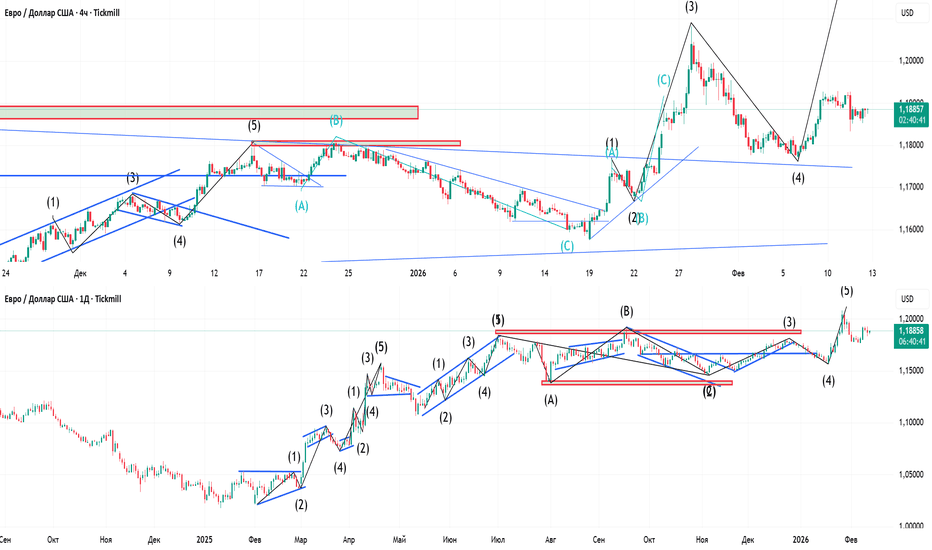 EURUSD: Затяжная консолидация в зоне завершения подволныПрошедшие сутки, в течение которых цена удерживается вблизи уровня 1.188, указывают на то, что рынок находится в фазе принятия решения после завершения коррекционной подволны 2. Отсутствие выраженной динамики при этом свидетельствует о равновесии сил, однако сам факт удержания цены выше недавнего ми