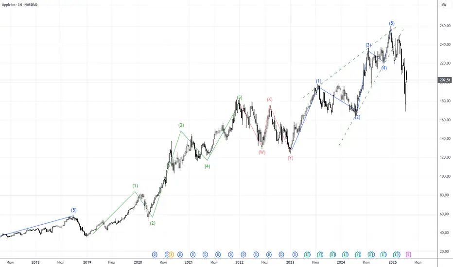 Широкий рынок и деверсифицированные портфели не так явно себя ведут, IMHO. Но в APPLE отражаются и тарифы, и отношения с китаем, и это то, что долгое время держл Баффет, и вот эта диагональная волна после такого огромного тренда, и так НА ДАННЫЙ МОМЕНТ выглядит как начало грандиозного шухера! Если только вдруг Трампу не имплантируют в мозг neurolink и он вдруг переключится на какую-то грамотную продвинутую политику, одним махом закончит средневековье, и вообще произойдут чудеса искусственного, А ГЛАВНОЕ, естественного ИНТЕЛЛЕКТА!