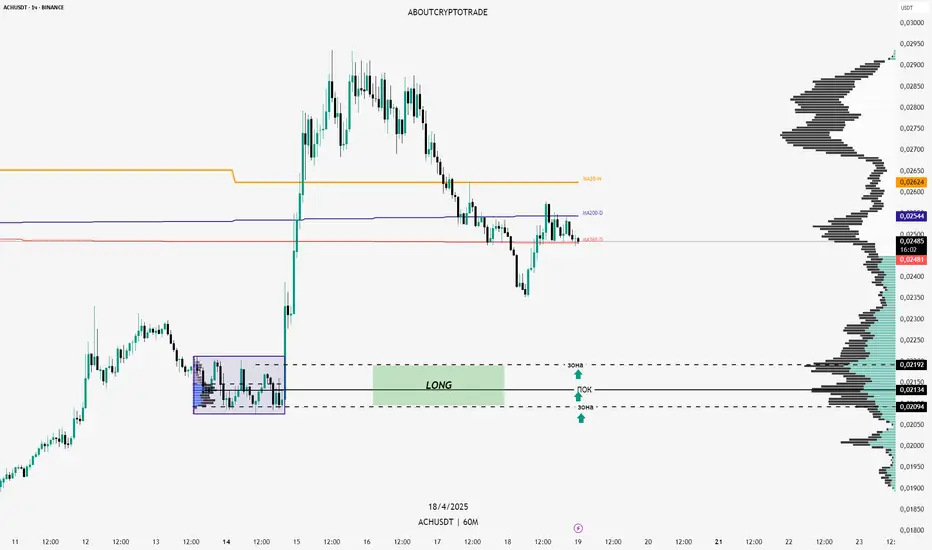🟢Зона интереса 0.02192-0.02094 (ПОК 0.02134) - верхняя граница зоны имеет хорошие объёмы, поэтому рассматриваю ее на ровне с ПОКом структуры. Набирать позицию советую по всей структуре на указанных уровнях, а стоп ставить под структуру