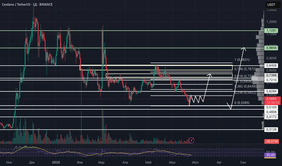 Ожидаю, что цена начнёт рост от 0.5105$ к ближайшим сопротивлениям на уровне 0.6284$ - 0.7210$.