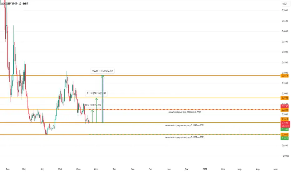 Пунктирная зеленая линия лимитный ордер на покупку (0.1021 200$).