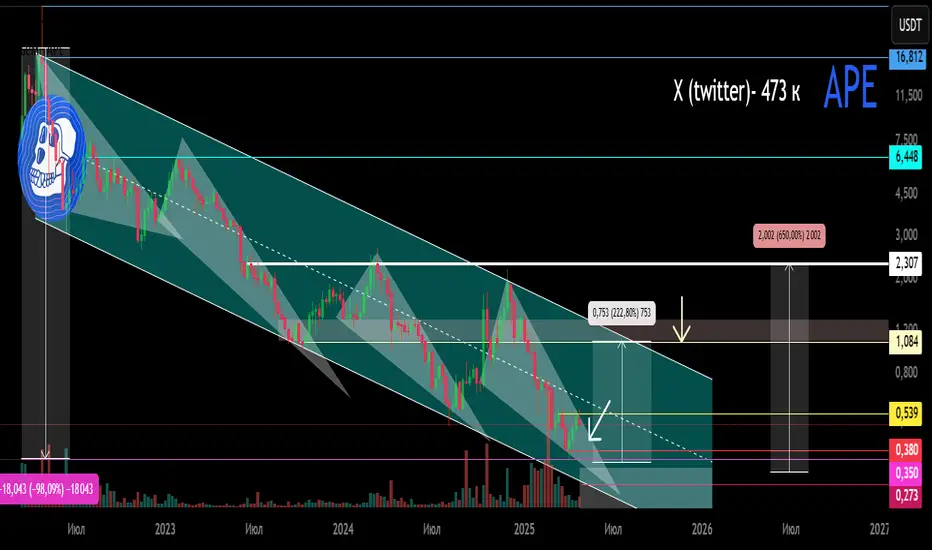 1️⃣Снижение от максимума на -98%, что приемлемо для активов такой ликвидности и капитализации, после этого или разворот тренда (основного), или полный скам.