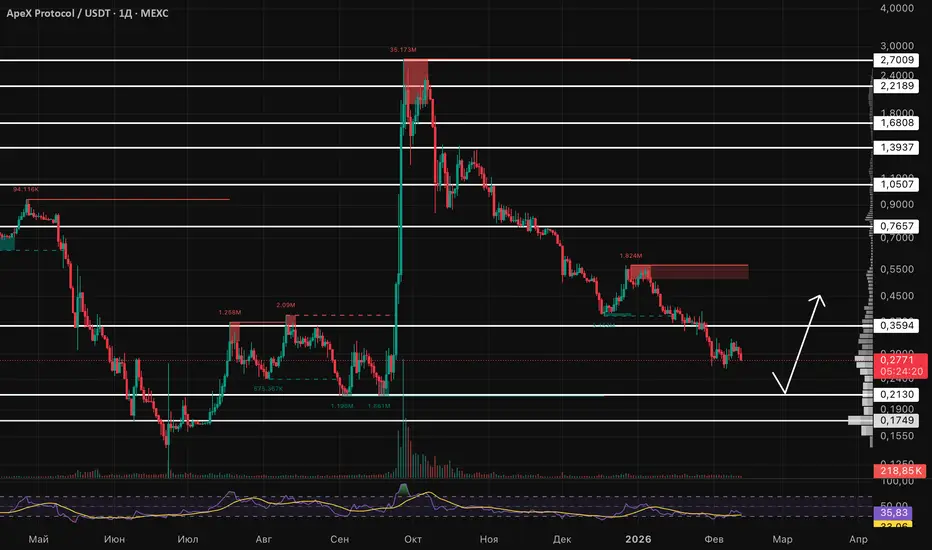 По #APEX на 1D TF структура в общем и целом выглядит довольно привлекательно для среднесрочной работы. Актив постепенно формирует интересную зону для набора позиции, если рынок даст нужную цену.