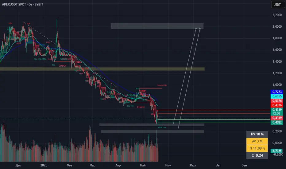 APEX точки для покупки в лонг на споте стоит рассматривать от прихода цены к 0,34-0,23$.
