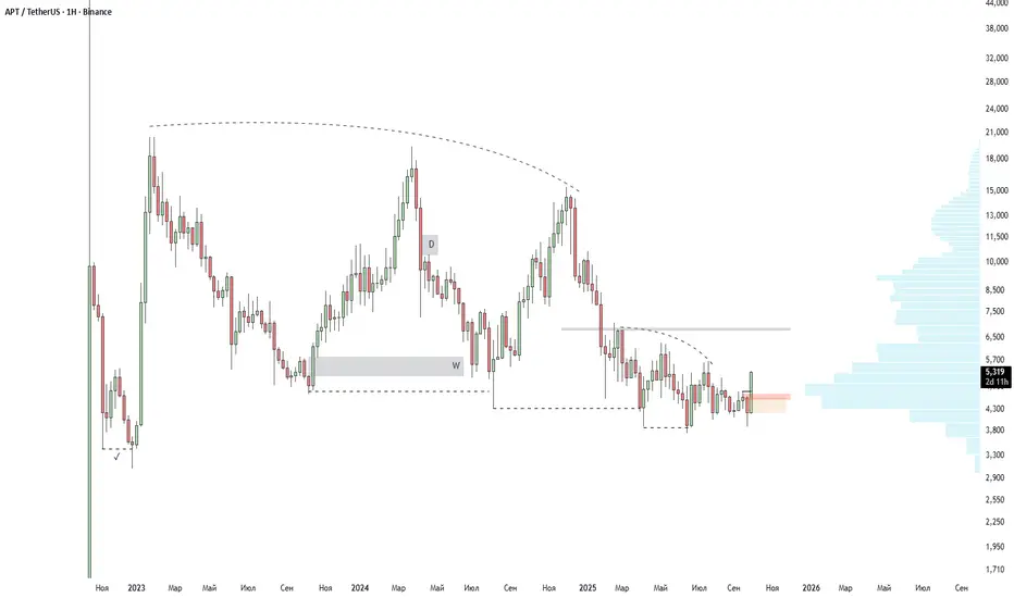 На отметке 6,8 есть месячный тонкий fvg, это первая цель, в случае формирования поглощения на недельном ТФ.