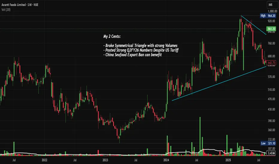 The technical breakout from the symmetrical triangle, combined with the China-Japan seafood ban opportunity, creates an interesting risk-reward setup. The company has demonstrated resilience by posting strong YoY numbers despite the US tariff shock. However, the sequential margin compression and global shrimp price weakness remain concerns.