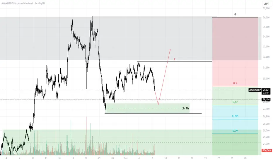 Ожидаю приход цены в зону часового ордер-блока — это сильная область и наша ключевая зона для покупок 0,62 по фибе и ниже, которую мы отмечали ранее на старшем таймфрейме.