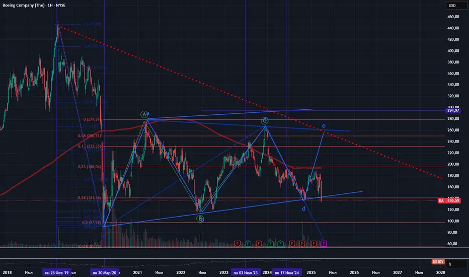 Эта бумага технически вышла из долгосрочной поддержки. По сути компания практически игнорировала все хорошие и плохие новости и была сама по себе. Пробитие данного коррекционного треугольника открывает путь для нисходящей волны С.