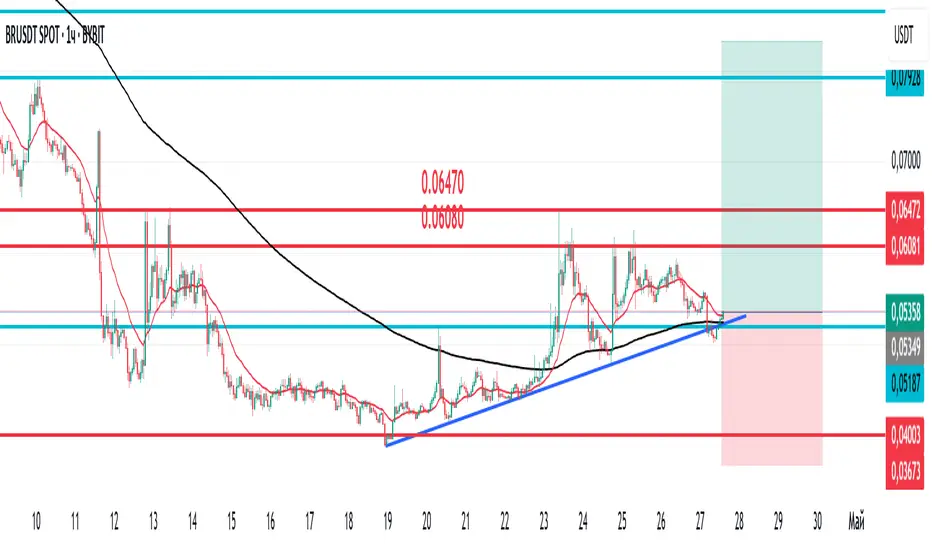 BR неплохо откатился и появилась возможность открыть "Long" с минимальным риском. Цель роста - 0,06000 и далее к 0,08000.