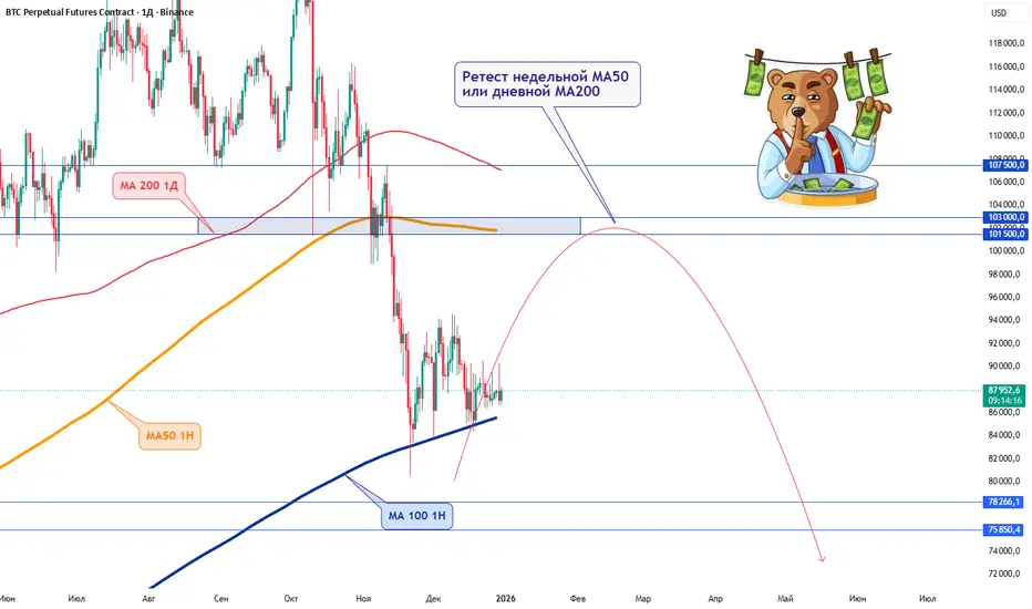 1. В начале 2026 года ожидаю рост к пробитым поддержкам - недельной МА50 и дневной МА200.