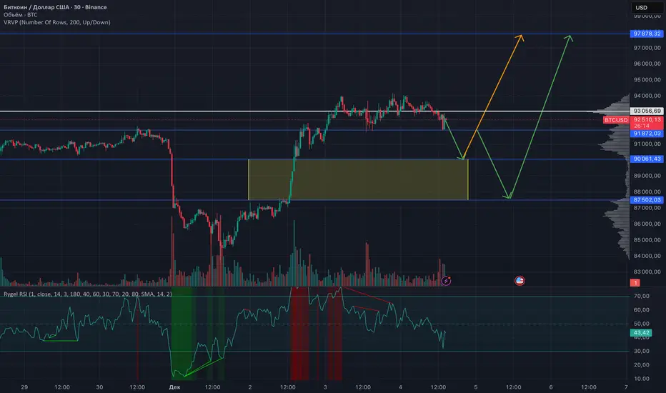 Но для полноценного импульса вверх рынку нужен кислород — в виде здоровой коррекции. Я лично жду откат в район $92 000–$90 000: пусть там вытряхнут слабые руки и дадут нормальную точку входа, а не эти жалкие микро-откаты, на которых ничего не построишь.