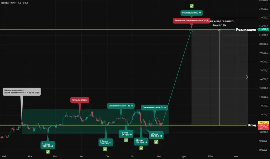 🎉Пятый (дополнительный) раунд откупа среднесрочных позиций на 40-30-20 F&G (выполнено, предикта на него не было, но выделяли дополнительный капитал под такой нестандартный случай)