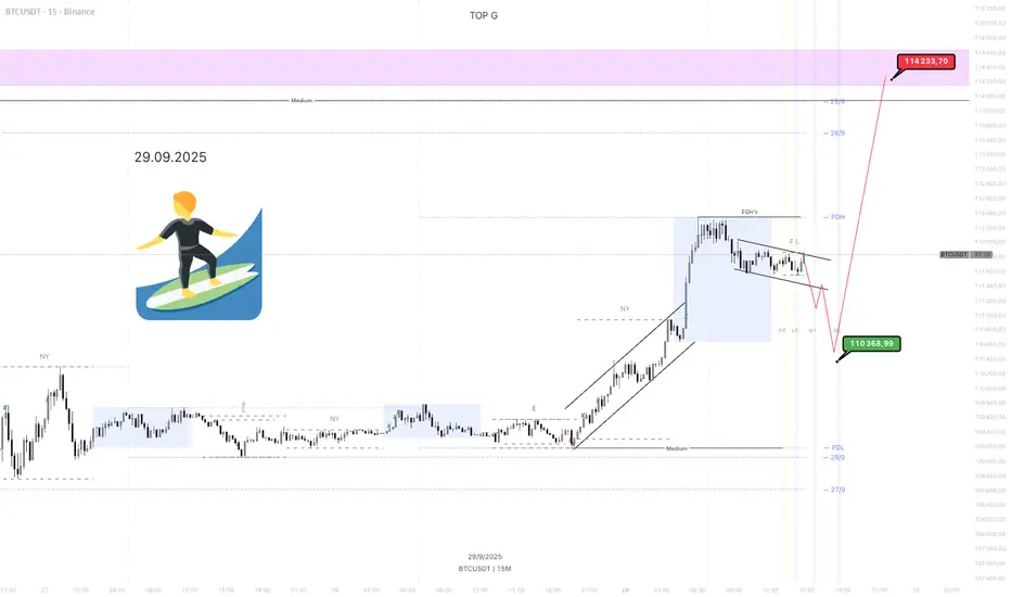 3️⃣ Основная цель сверху: зона предложения на 114 200 USDT, где совпадает кластер ликвидности и сопротивления.