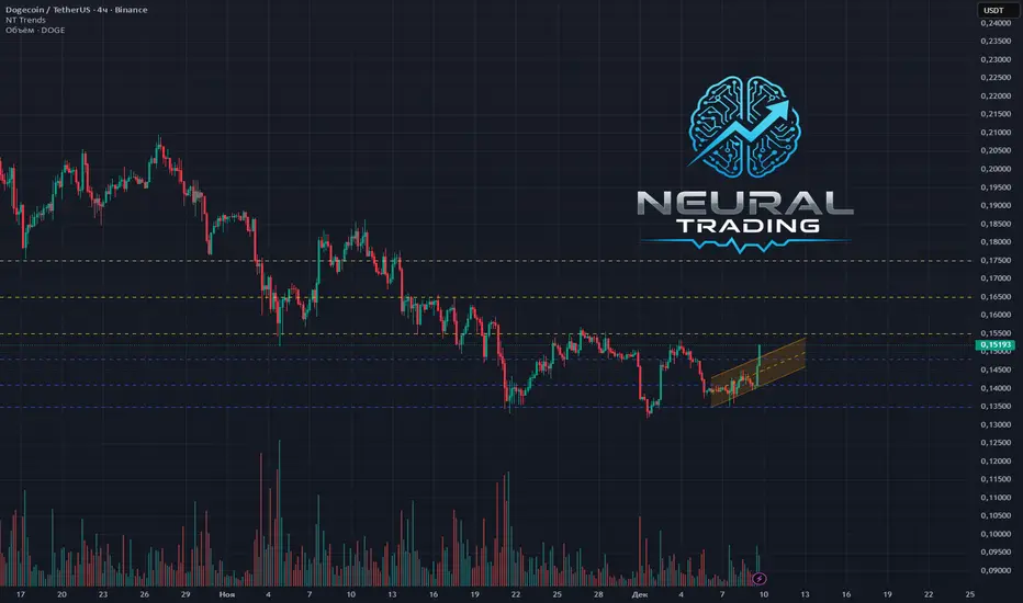 Несмотря на тревожные новости по ETF, техническая картина кричит о силе покупателей. Импульс слишком мощный, чтобы его игнорировать. Вероятно, мы увидим попытку пробоя стены на 0.1530$. Если она устоит, возможна коррекция. Если падет — дорога наверх открыта.