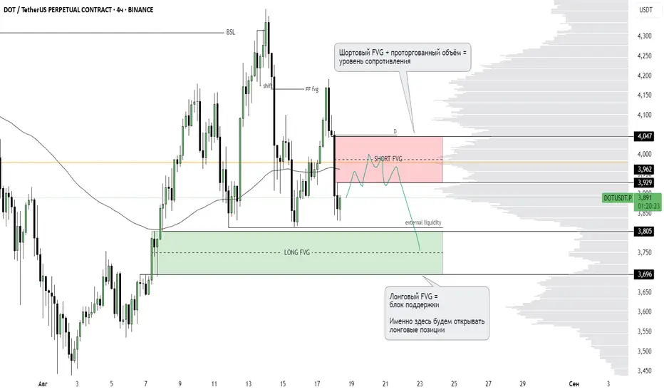 На днях хочу поторговать актив DOT на продолжение нисходящего тренда