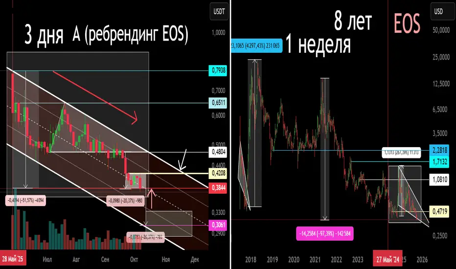 Сравнительный анализ. Старая история графика EOS (8 лет), и продолжение его в новой монете A (Vaulta), после ребрендинга.