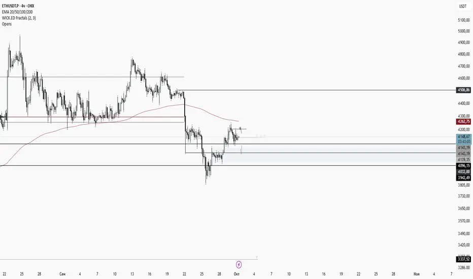Фиксируется чёткое сопротивление в зоне объёмного кластера, что усиливает шорт-наратив. В краткосрочной перспективе стоит ожидать движения в сторону 1D FVG + key level 4143.19, где возможно формирование точек входа для дальнейшего сценария по снятию ликвидности выше.