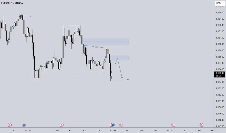 Оставили EQL на уровне PWL. Буду рассматривать шорты на продолжение от ближайшей опорной области в виде - FVG 1H, не думаю, что дадут коррекцию в данную область, возможно сформируем новую, но реверсить точно не буду.