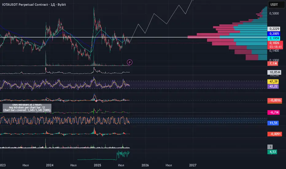Значительные объемы сконцентрированы в зоне 0.19–0.22 USDT, что выступает важной зоной консолидации и потенциальным уровнем поддержки/сопротивления.