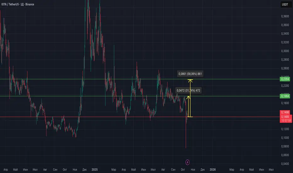 📊 Монета IOTA/USDT показала мощный вынос вниз, собрав ликвидность под ключевой поддержкой, после чего моментально выкупилась. Это классическая реакция на финальный сброс, когда крупный игрок забирает позиции у розницы перед ростом.