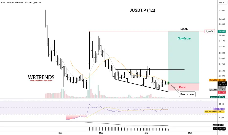 Приветствую Вас дорогие друзья! В этой идеи я показываю свои ожидания по #JUSDT Эта идея не является инвестиционной рекомендацией. Если у Вас есть вопросы по моей торговой системе WRTRENDS и классическому методу Вайкоффа, пишите и не забывайте ставить лайки. Спасибо за просмотр! С уважением Артем Калашников