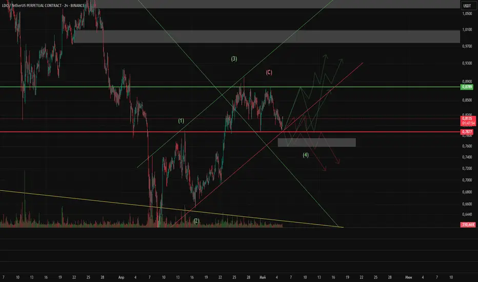 При закреплении (удержании) цены 0,7850, возможен потенциальный рост к 0,8780 с возможным пробитием и походу к 0,980- 1,950, что будет являться глобальной 1 волной роста. В данном случае обновление цены 0,8780 не допустимо, но не большой закол возможен, так-как
