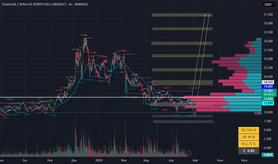 LINK на спот или фьючи среднесрочно в лонг стоит рассматривать от похода к 12.5$, либо в случае глубокой коррекции рынка от 10-9$.
