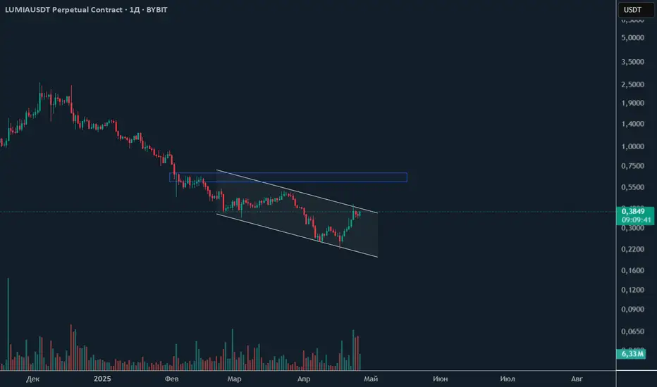 Цена поджимается к пробою нисходящего канала, после пробоя потенциал роста минимум к 0.5$