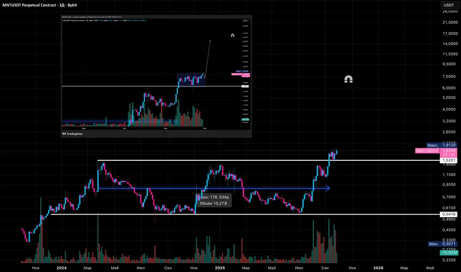 MNT - монета биржи bybit, у неё огромный потенциал и всего то 6 млрд$ капитализация, он будет очень высоко.