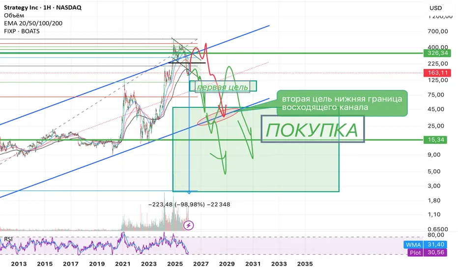 Здесь по целям на графике обозначил. Здесь прямая зависимость от рынка США. Рынок падает = падает биткоин=сильно падает эта бумага.