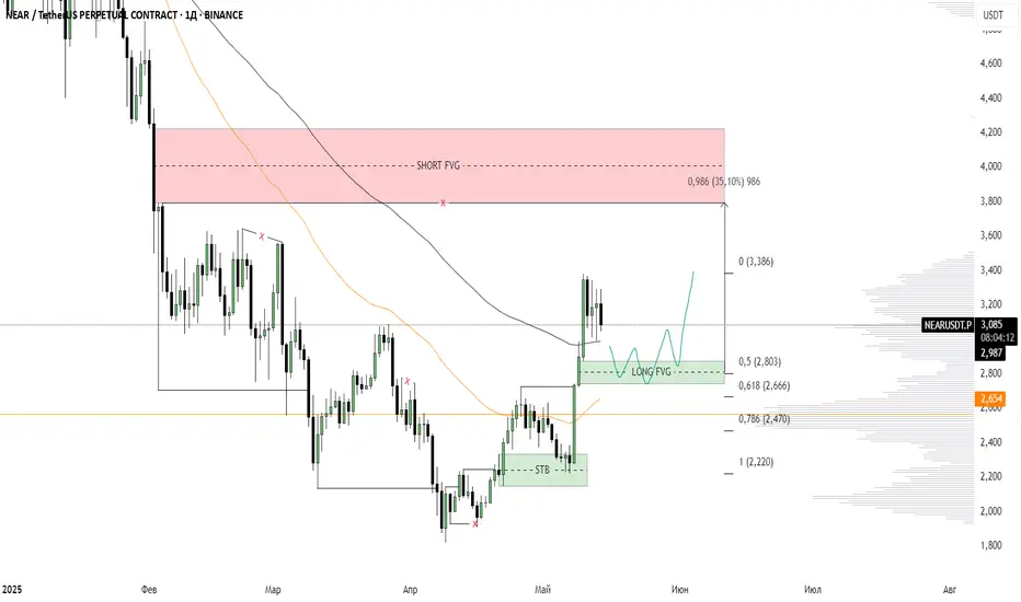 На 1D TF видим, как цена по итогу инвертировала шортовый FVG и после мы получили закрепление выше локального хая, что говорит нам о сильном восходящем тренде. На таком движении сформировался лонговый FVG, который теперь выступает в качестве магнита для последующего движения цены
