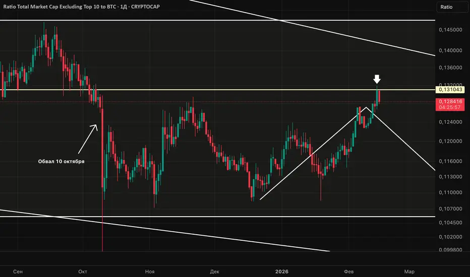 На графике отмечено, что пара Altcoins/Bitcoin обновила максимум за последние 4 месяца и вернулась выше уровней обвала 10 октября 🗓