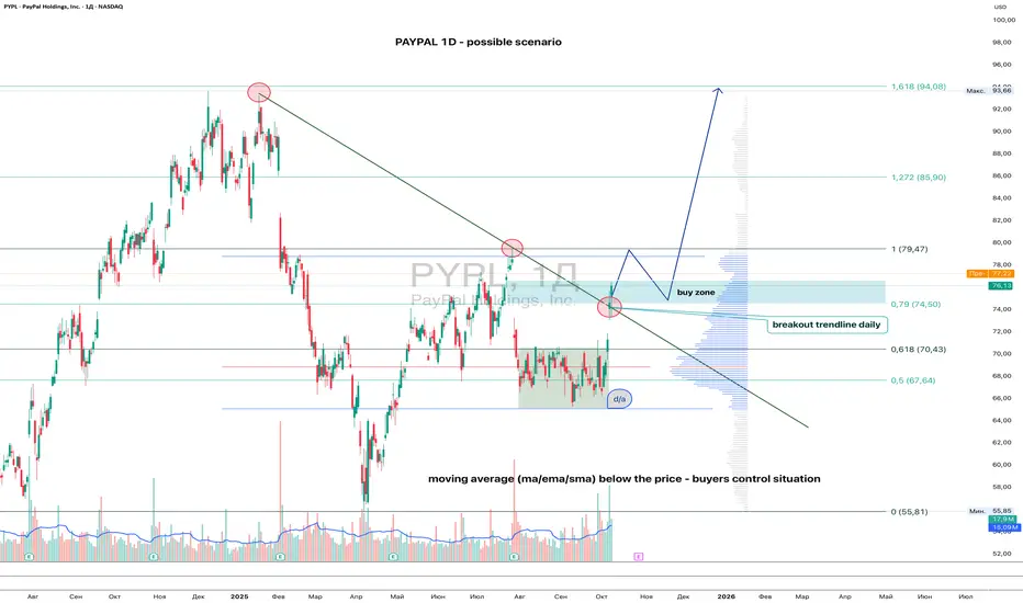 Так что сценарий простой: подтверждение buy zone и дорога вверх открыта. Главное не паниковать на мелких откатах, PayPal только разминается перед забегом.