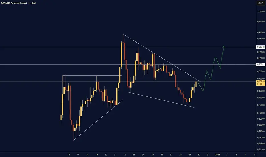 График формирует технические паттерны, на данный момент — нисходящий клин.