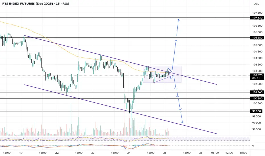 Для лонга смотрим пробой-тест границы канала. Цели: 105580; 107130.