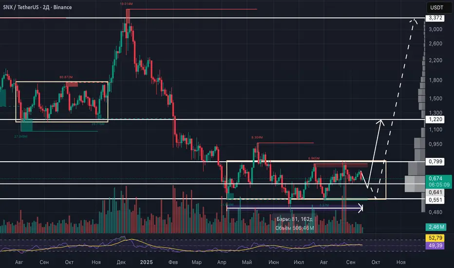 На данный момент, актив уже 162 в боковике в диапазоне 0.799$ - 0.551$, где 0.051$ - сильнейшая поддержка для цены. В случае коррекции - на этом уровне можно откупить актив на копеечку на спот.