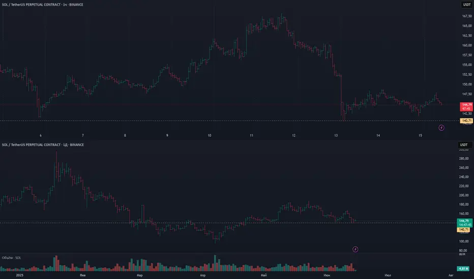SOLUSDT.P - 140.71 Short - медленный подход к уровню, накопление над уровнем, хороший запас хода, каждый локальный High ниже предыдущего, общий фон рынка - шортовый.