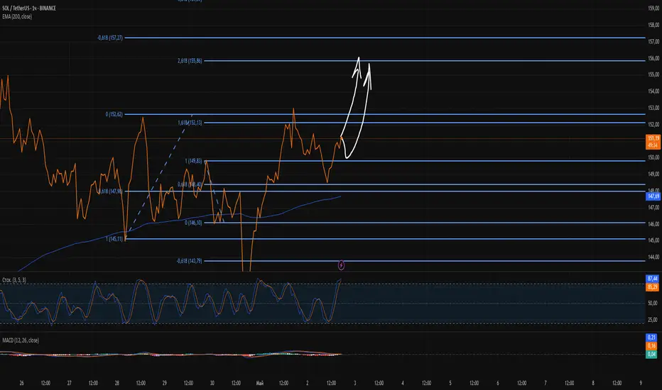 SOL сходил вверх до 152.40, и сейчас, похоже, просто переваривает рост. Коррекция? Да. Паника? Нет. Это похоже на 4-ю волну в рамках классического импульса. Если все идет по плану, впереди пятая волна — и она может удивить.