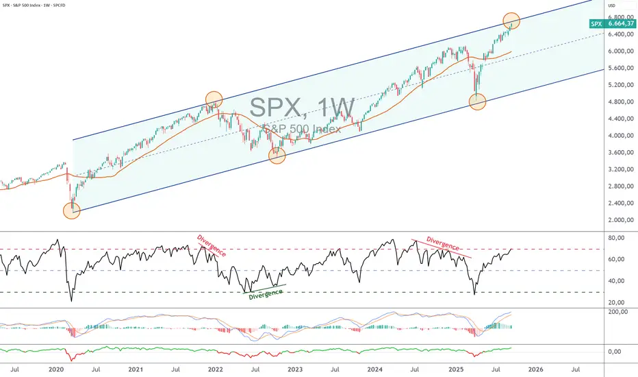 1. Achtung: Der S&P 500 Index und die Futures haben die obere Begrenzung ihres langfristigen Aufwärtstrends erreicht, jedoch noch keine bärische Divergen