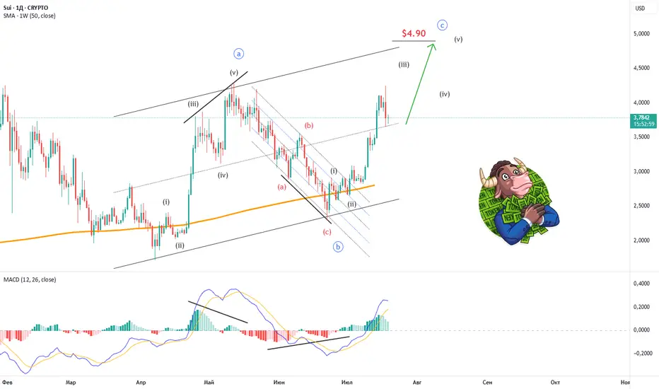 🧐 У SUI, на основании первого импульса, можно предположить развитие, как минимум, зигзага АВС: