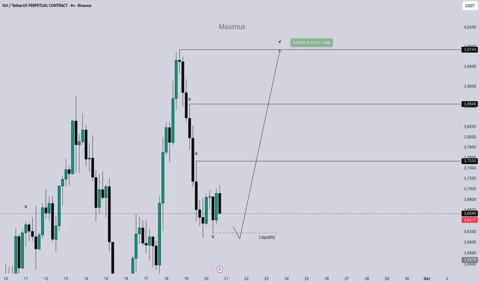 ✅ Цена сейчас консолидируется в районе 3.64, при пробое и закреплении выше 3.67 открывается потенциал роста к 3.75–3.86 и далее к 3.97 (+9,8%). Риск — повторный откат к поддержке 3.57, откуда можно ждать новый импульс вверх. 🛫 Оптимально рассматривать лонг со стопом чуть ниже 3.57.