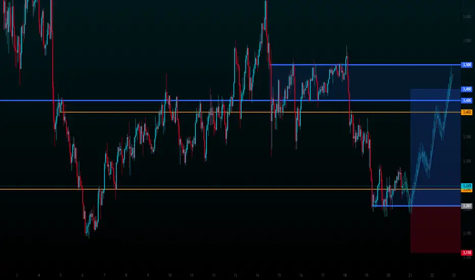 🚀Основной целью нашего откупа является область ключевого дневного сопротивления, сосредоточенная в ценовом диапазоне 3.426 — 3.500. Внутри данной области были сформированы крупные объемы, которые способны вызвать повторное коррекционное нисходящее движение. Поэтому здесь, внутри области, размещаем наш тейк профит.