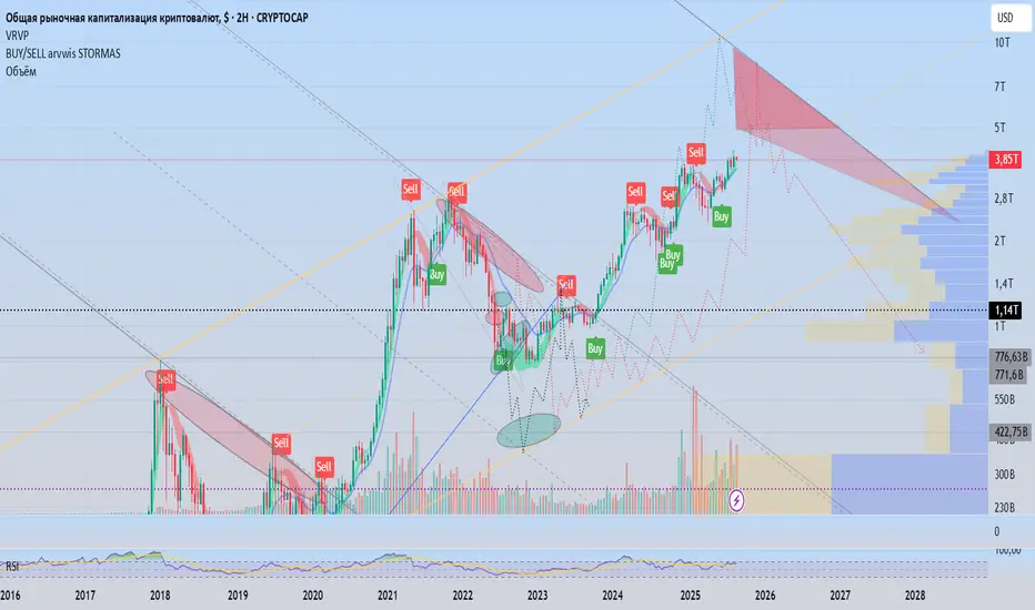 В сообществе попросили рассмотреть капитализацию рынка криптовалют в этом цикле...