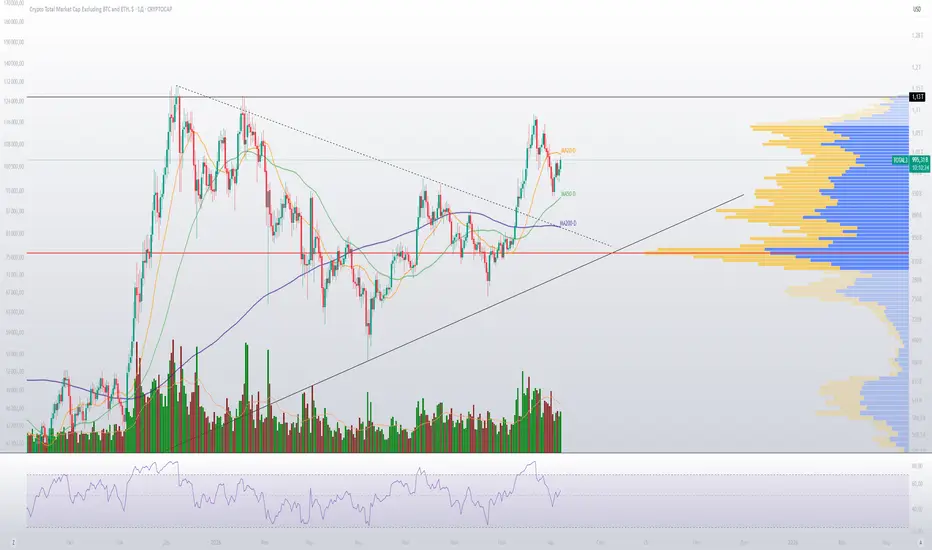 1️⃣ Капитализация альтов без учета #ETH и #BTC успешно пробила среднесрочную нисходящую трендовую и скользящую MA200d. Более того уже смогли успешно закрепится выше. После пробоя капитализация рынка альтов выросла на +60 млрд $, а при пиковом значении +90 млрд $. Это очень много для неликвидного рынка альтов.