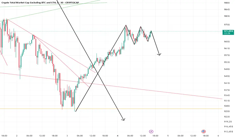 Вероятный сценарий, если фигура Двойная вершина вниз подтвердится.