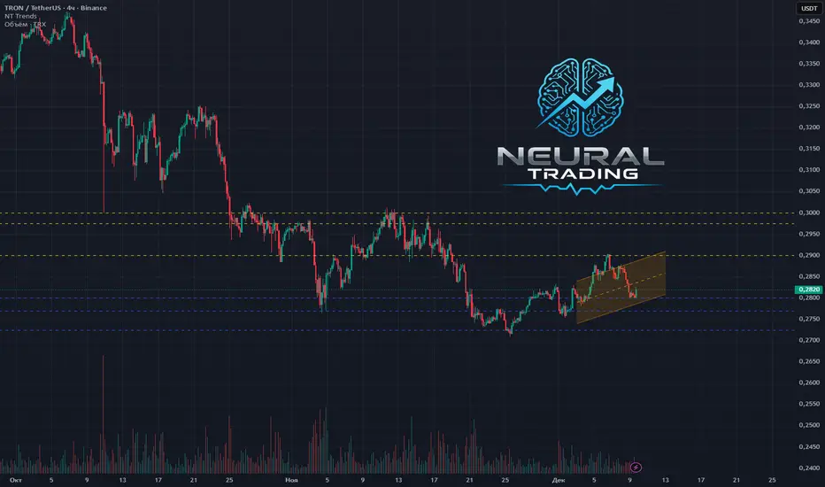 🐂 Бычий флаг/Нисходящий канал: На 4-часовом графике отчетливо видна коррекционная структура после роста. Это может быть как "бычий флаг", так и "нисходящий канал". В обоих случаях, пробой верхней границы этой формации (сейчас в районе ~0.2850) станет сильным техническим сигналом на продолжение восходящего тренда. Недавний отскок произошел как раз от нижней границы этой структуры.