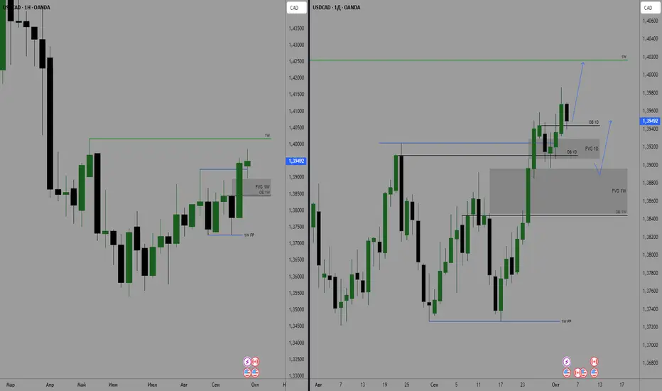 Продолжение вверх в рамках текущего бычьего 1D OF, либо через коррекцию в область 1W FVG/OB.