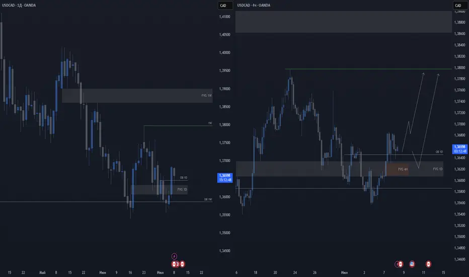 Рассматриваю 2 варианта для открытия позиций: формирование 4H OB и вход от его теста, либо вход от 4H FVG в случае снижения цены.