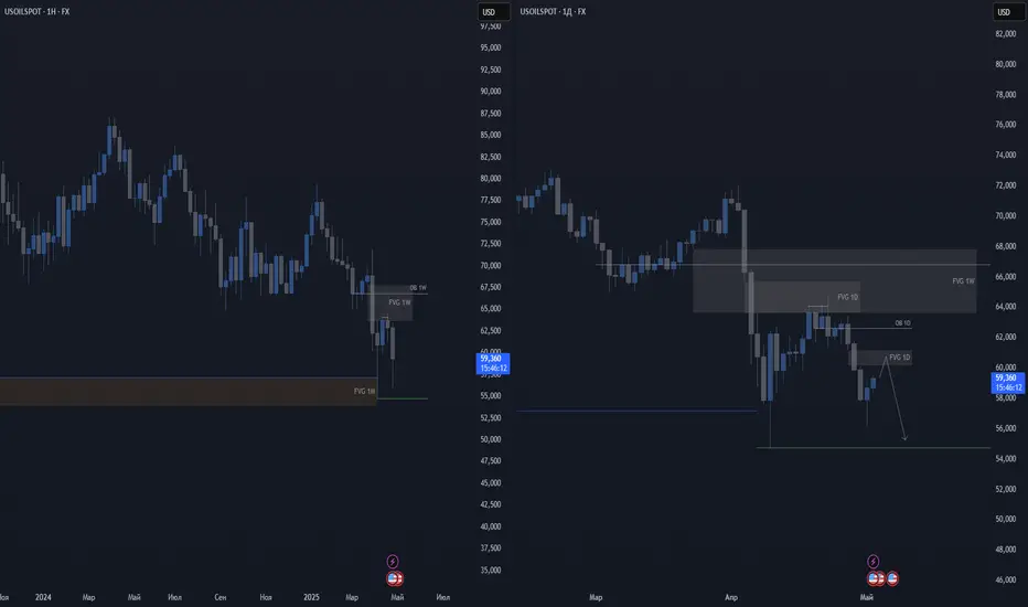 Ожидаю продолжение движения вниз после теста дневного FVG